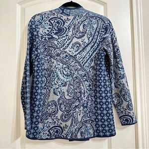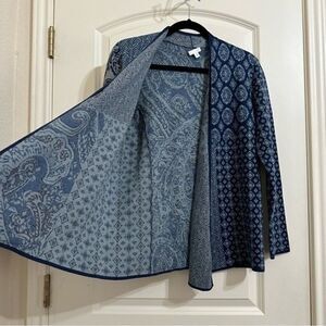 J.JILL BOHO MULTI PRINT LONG SLEEVE COTTON BLUE CARDIGAN XS