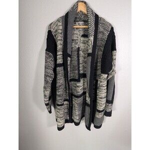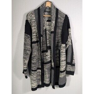J.JILL Black Gray White Patchwork Wool Blend Open Cardigan Sweater Coat Sz L N96