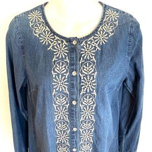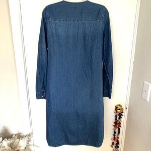 J.JILL CHAMBRAY BLUE SHIRT DRESS EMBROIDERED DETAILS SIZE XS