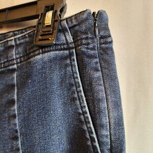 NAME: J. JILL DENIM AUTHENTIC FIT FRONT SLIT ANKLE SIZE 4 MEDIUM WASH BLUE SIDE ZIP FLAT FRONT FUNCTIONAL FRONT AND BACK POCKETS COTTON BLEND