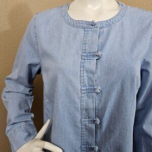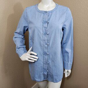 J.JILL Denim NWT Clarity Wash Knot Button Long Sleeve Blouse~Size M
