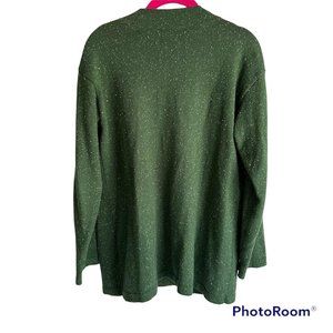 J.JILL Forest Green Speckled Cotton Angora Blend Ladies Minimalist Cardigan, PS