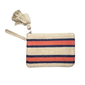 The Jute clutch has a thick jute tassel and a zippered top for closure with a stripped multi colored design. Perfect to hold any of your necessities for a day at the beach or to add to your purse to hold all your minis. Excellent condition. NWOT.