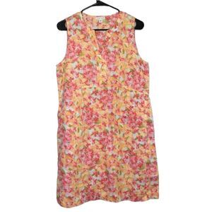 J.JILL LINEN FLORAL SLEEVELESS SHIFT DRESS WITH POCKETS COTTAGECORE PETITE SMALL