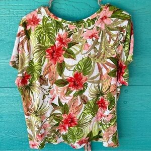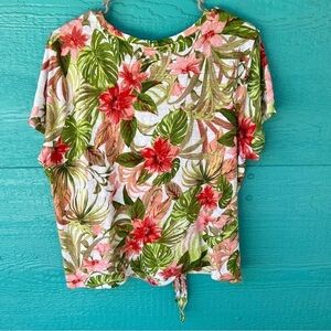 J. Jill Love Linen Tropical Floral Tie-Front T-shirt Women's Medium.