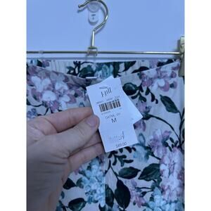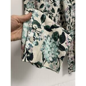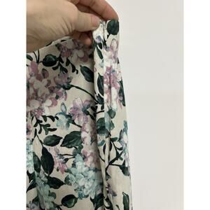 J.JILL Linen-Blend Stretch Button Hem Royal Multi Floral Print Ankle Pants Sz M