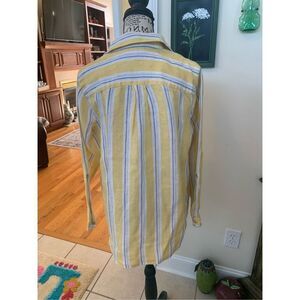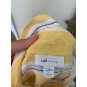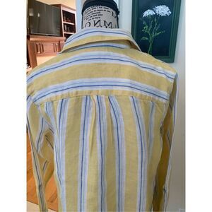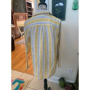 J JILL Love Linen Yellow Stripe V Neck Collared Long Sleeve Popover Shirt size small.