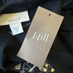 J.JILL PURE JILL Top Blouse Navy Blue Embroidered Cotton Boho NWT