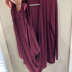 J. JILL PureJill M Twist Open Front Cardigan Wrap Top Burgundy Wine Red