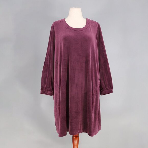 J.JILL PureJill Plush Velour Tunic Dress Long Sleeve Plum Purple Size XL