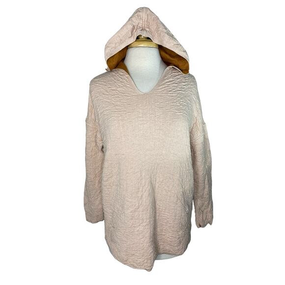 J.JILL Reversible Crinkle Knit Rayon Hoodie Sweater. One side is pale peachy-orange textured fabric. Reverse side is a smooth pumpkin orange knit. Versatile piece is perfect for seasonal transitions. Size Small Womens. Excellent condition -- no rips, stains, or holes.