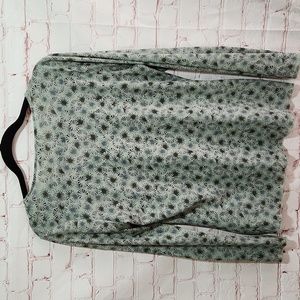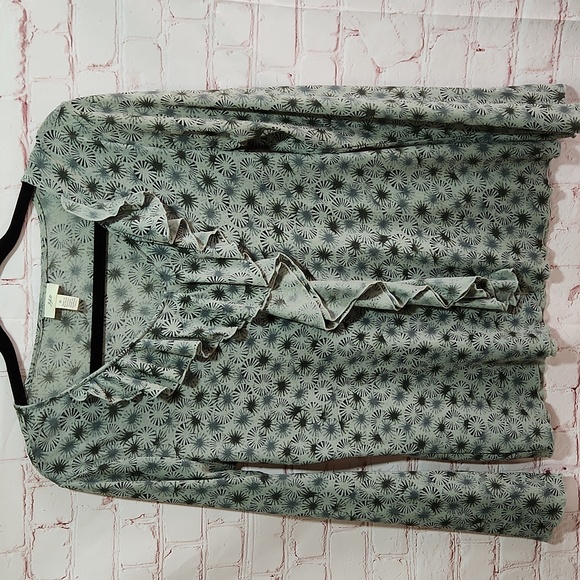 J.Jill ruffle front top. Excellent used condition. Light olive Green with black and green design. Size M