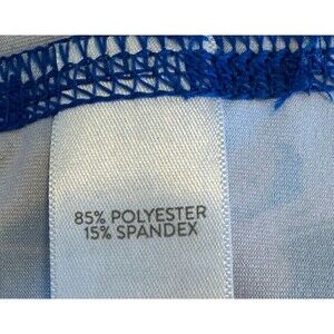 The J.JILL Sleeveless Dress in size XS features a blue floral print, making it perfect for summer, beach, and casual occasions. The dress has a v neckline, zip closure at neck, and princess seams on the front and back for a stylish touch. Made from a knit fabric blend of 85% polyester and 15% spandex, this dress is comfortable and easy to care for with machine washable instructions. The above knee length and sleeveless design add to the airy and beachy feel of the garment, making it a versatile and fashionable choice for the warmer seasons.