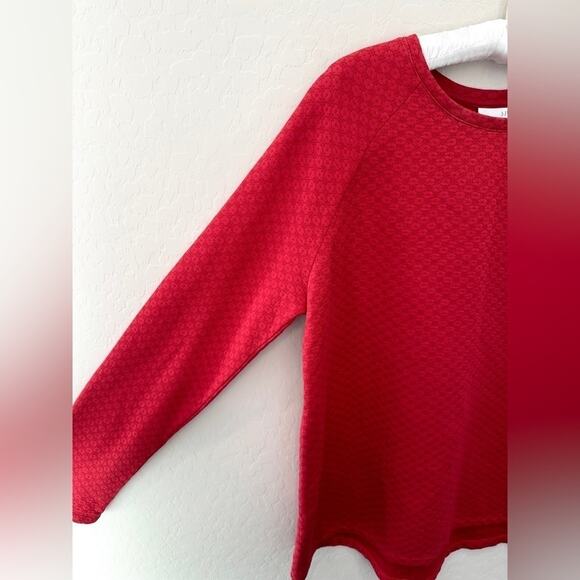 Tags jjill tall pullover, quilted cotton sweatshirt, red textured top, tall women’s top, cozy layering shirt, jjill cotton sweater, tall loungewear, crewneck sweatshirt, comfy travel top, minimal quilted pullover