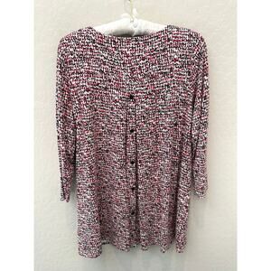 Tags J.Jill Wearever, abstract print, button back, tunic top, geometric pattern, career wear, minimalist style, stretchy top, soft knit top, fall layers, easy travel piece, business casual