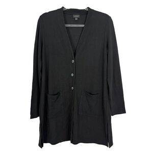 J.JILL Wearever Collection Ribbed Long Cardigan S Petite Pockets Black EUC B9