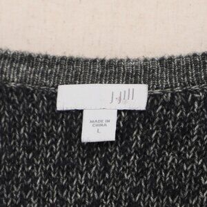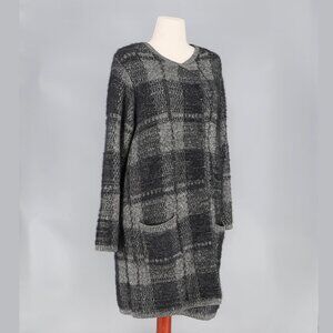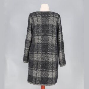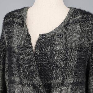 J.JILL Windowpane Long Fuzzy Knit Cardigan Sweater Black Gray Size L