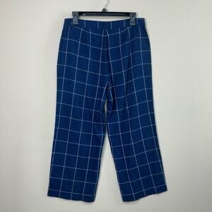 J.JILL Windowpane Plaid Wide Leg Cropped Trousers Midnight Blue White Size 8