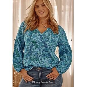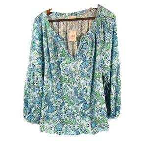 The new with tags J.JILL Women's 3/4 Sleeve Smocked Top in size 2X features a paisley floral print, making it a feminine and bright addition to your wardrobe.