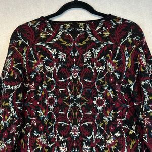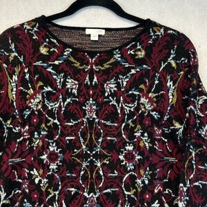 J. JILL Women’s Sweater Large Black Red Multi Knit Floral Jacquard Long Sleeve