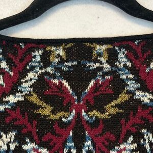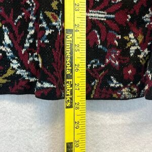 J JILL Women’s Sweater Large Black Red Multi Knit Floral Jacquard Long Sleeve