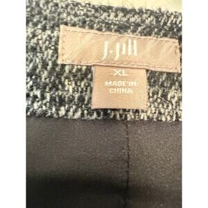 This is a JJILL Women's sweater in size XL. The sweater is a black, white, and gray tweed with a wool blend. It is in great condition and would be a wonderful addition to any wardrobe!