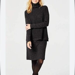 J.JILL silk/cotton alyssa sweater skirt flecked charcoal gray donegal size L