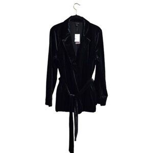 J.JILL velvet single button blazer with waist tie in black NEW size L