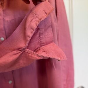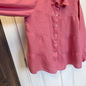 J.Jill 100% L Large Linen Tiered Seam Button Up Shirt Blouse Top Dusty Pink