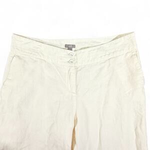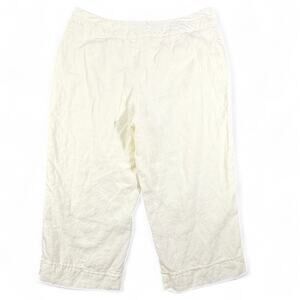 J.Jill 100% Linen Wide Leg Cropped Cream Pants Womens 14 Coastal Lagenlook Lined