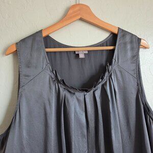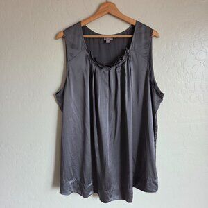 J.Jill 100% Silk Pleated Ruffled Sleeveless Blouse Top Metallic Grey/Silver Size Women's 2X Plus