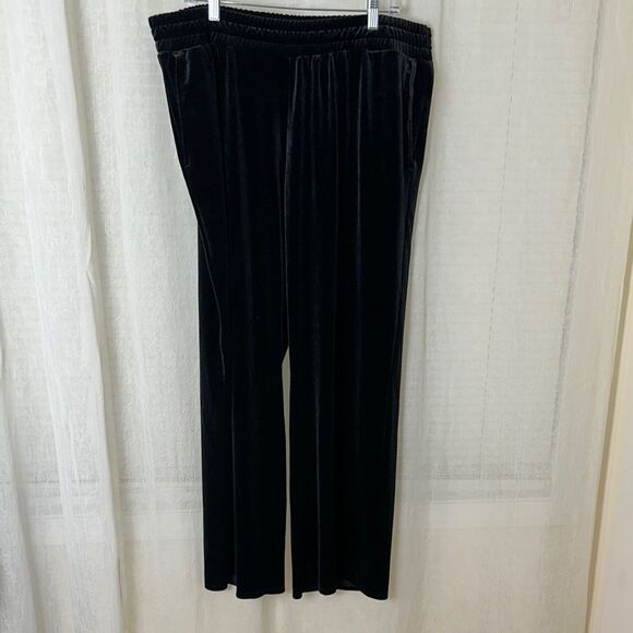 J.Jill 2X Black Wearever Collection Velour Wide Leg Pull-on Pants with Pockets