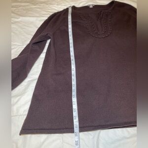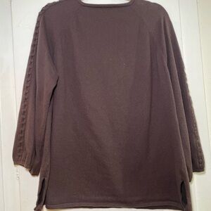 JJill Ladies 2XL Brown Sweater with knitted detail on front and down each sleeve and front tie.