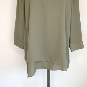 Elevate Your Wardrobe with Our JJill Moss Green Asymmetrical Blouse - Lightweight and Stylish!