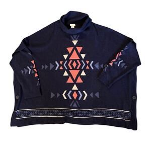 J.Jill Aztec Knit Poncho Southwestern Aztec Sweater Navy Blue Size XL Petite