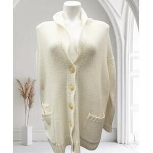 J. Jill Barley Cozy Cardigan Sweater Cream Wool Blend Oversized Women's Large