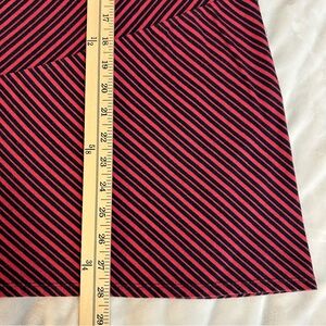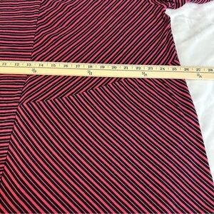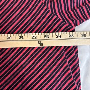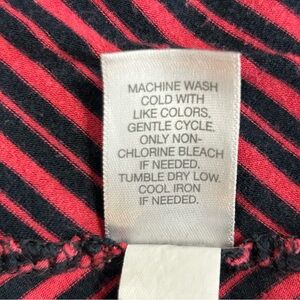 • Pattern: Playful red and black stripes with a flattering diagonal-front panel and relaxed silhouette