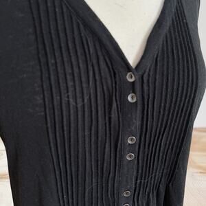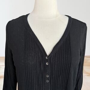 J.Jill Black Pintucked Tunic Sweater Sz M Linen Blend Button Up Slub Knit