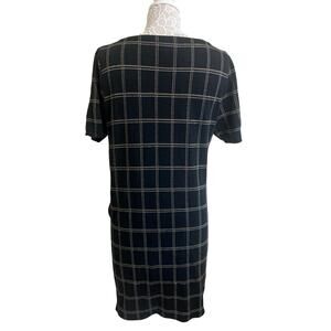 Chic and comfortable J.Jill black plaid ponte dress in women’s size large. Features a classic plaid pattern, short sleeves, and convenient side pockets. Made from a soft, stretchy ponte knit fabric that flatters and moves with you. Perfect for work, casual outings, or layering with tights and boots for cooler weather.