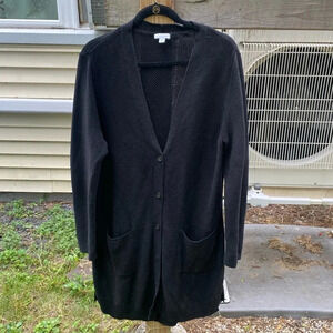 J.Jill Black V-neck Knit Textured Boyfriend Duster Cardigan Large