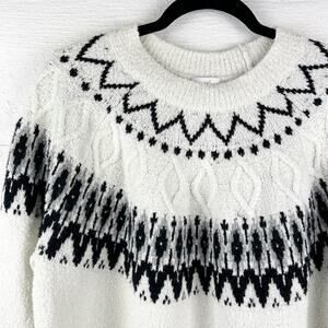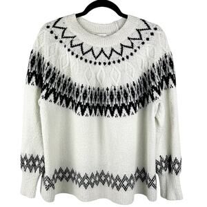 J.Jill Black & White Fair Isle Sweater – Classic Winter Knit, Size XL