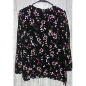 J.Jill Blouse Layered Asymmetrical Crepe Floral Black 100% Rayon Size Small