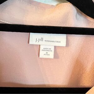 J. Jill Blouse. Washable Silk. Blush. Size MP. Medium Petite. Button Front. Career. 100% silk. Length from shoulder to bottom is 27”. Armpit to armpit is 24”.