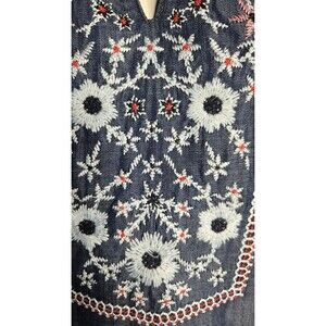 J.Jill Blue Denim Embroidered Floral Chambray Tunic Tank Top Size Small