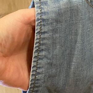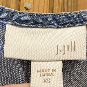J.Jill Blue Denim Linen Blend Shift Jumper Sleeveless Dress Pockets Size XS