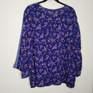 J.Jill Blue Floral Boho Round Neck Long Sleeve Blouse Shirt Plus Size 2X