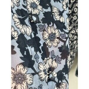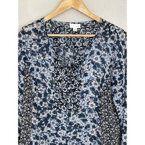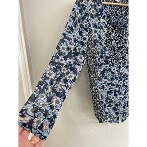 J.Jill Blue Floral Sheer Patchwork Blouse Tie Keyhole Women's Size Medium Petite