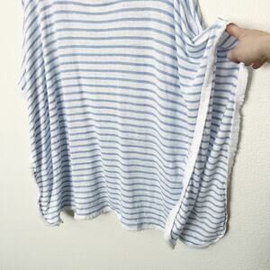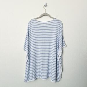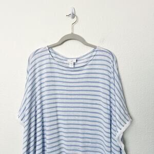 [J.Jill] Blue White 100% Linen Striped Fringed Poncho Top Size Medium Large M/L