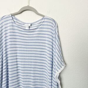 J.Jill Size Medium Large M/L Blue White 100% Linen Striped Fringed Poncho Top