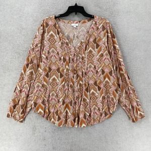 J.Jill Boho BLouse‎ Womens Size XL Rayon Casual Cottagecore Flowy Balloon Sleeve